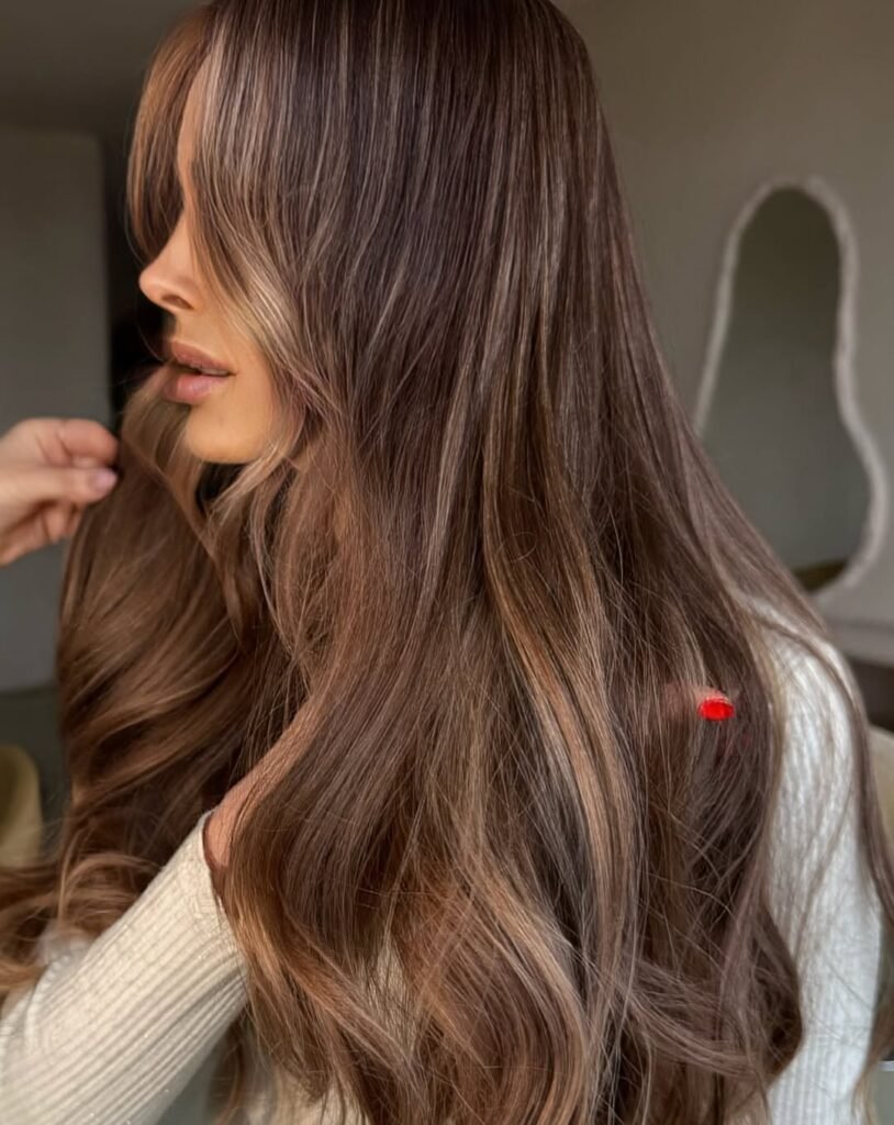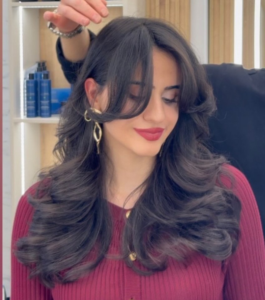 If you have curtain bangs this one is not even really a hairstyle, it is just wearing your hair down. But curtain bangs change everything about how long hair looks when it is simply left to fall naturally. They frame the face, they add softness and they give even the simplest down hair day so much more personality and intention. If you have been thinking about curtain bangs, this is your sign.