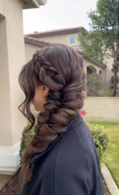 A side braid swept over one shoulder is one of those quietly beautiful hairstyles that never feels like it is trying too hard. Braid loosely, pancake the sections apart to make it fuller and tie it off with a simple hair tie. It keeps the hair contained, it looks feminine and graceful and it works on all textures from straight to wavy to lightly curly.