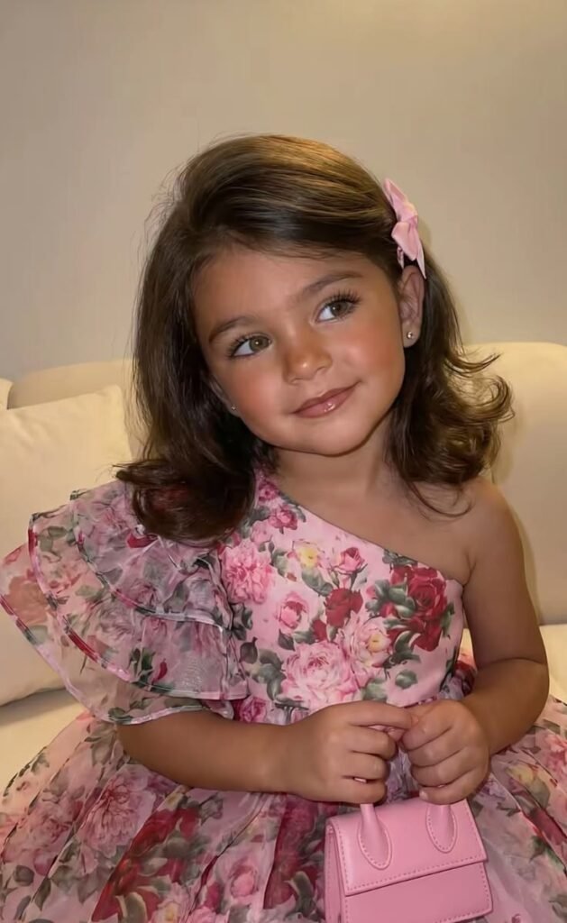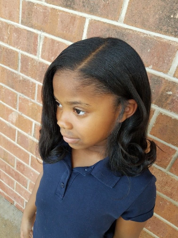 For a more grown-up, sophisticated look, this one is absolutely gorgeous. A deep side part with hair lying flat and sleek at the roots, then softening into healthy, natural-looking curls at the ends. It’s the kind of style that makes kids look and feel like the most put-together person in the room. It also puts real focus on hair health and natural shine, which I always love to see. Great for school or portraits when you want something clean and classic.