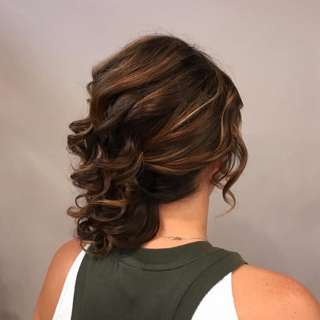 This one is for the girl who loves to shimmer without going overboard. Smooth, deep-walnut waves make up the base, with the top section elegantly secured using four sparkling crystal branch pins tucked into the twists for a touch of understated glamour. Below it, a dramatic cascade of glossy barrel curls drapes down the back with incredible shine and health. It sits right in that sweet spot between everyday beautiful and high-glamour, which makes it absolutely perfect for a special afternoon tea.